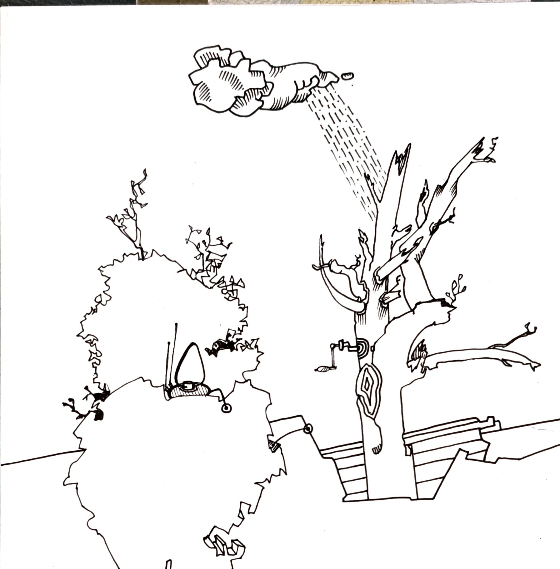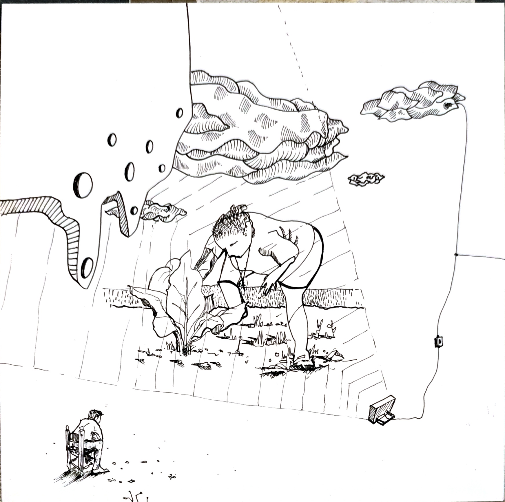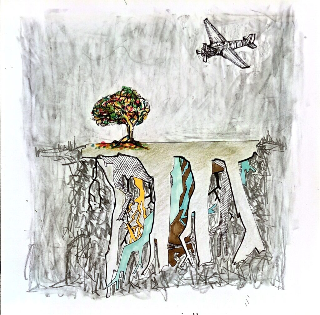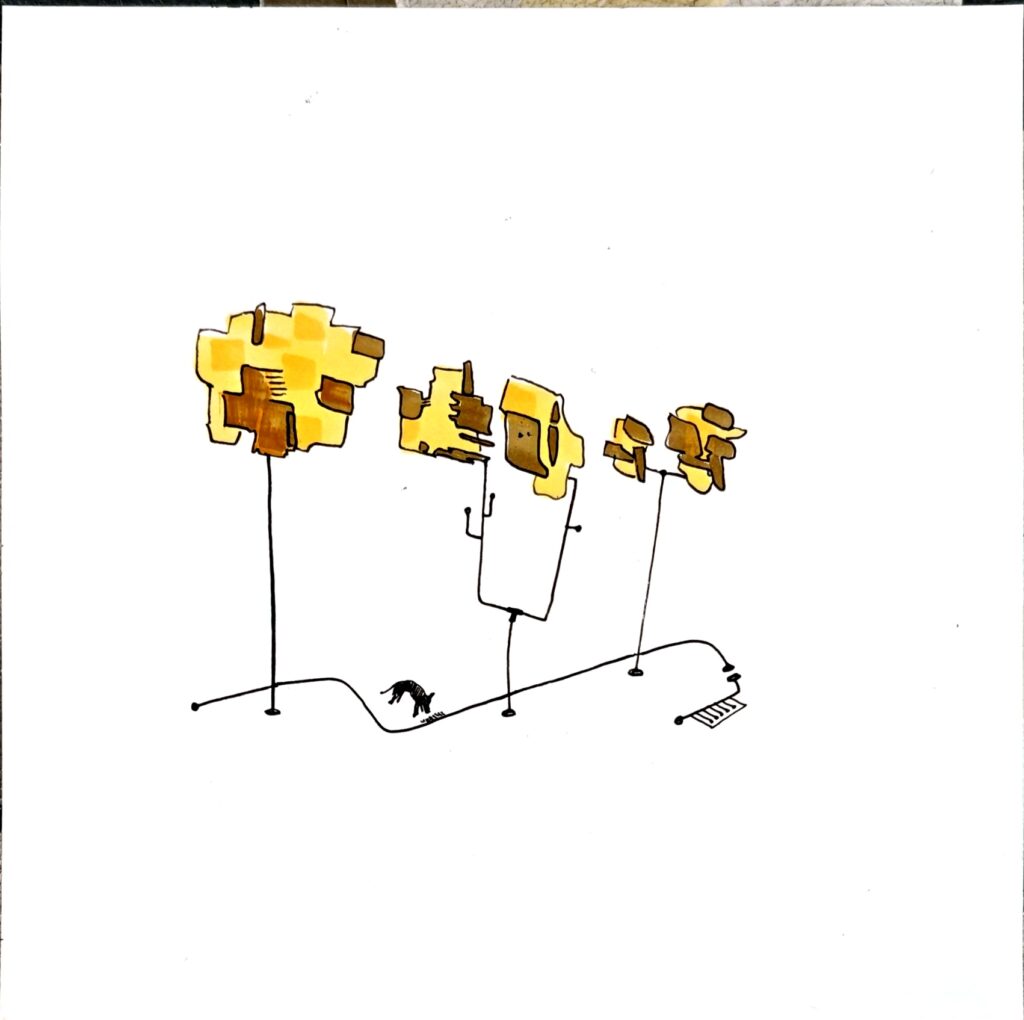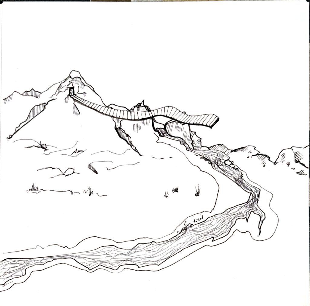 TUNAMPA no es un lugar fijo. Es una deriva. Un estado. Un contorno imaginario donde lo real y lo onírico se entrelazan sin pedir permiso.Las formas se dibujan como visiones, como fragmentos de una memoria colectiva desarmada por el tiempo.Hay montañas atravesadas por pasarelas imposibles, constelaciones que florecen en tallos, árboles que sostienen el abismo, figuras humanas de ensueños, recuerdos, y futuros posibles. Este sitio —dibujado en líneas que rozan lo absurdo y lo sagrado— propone una arquitectura del desconcierto. Una invitación a habitar el silencio, a ingresar en la “T” y la “U” como portales, como umbrales de una cartografía mental, suspendida en el espacio. TUNAMPA no se mira, se atraviesa. No se entiende, se percibe. Como quien escucha un sueño ajeno y lo reconoce como propio.Aquí, la lógica queda en pausa. Solo quedan las imágenes —ecos de lo que tal vez fuimos, o podríamos llegar a ser.