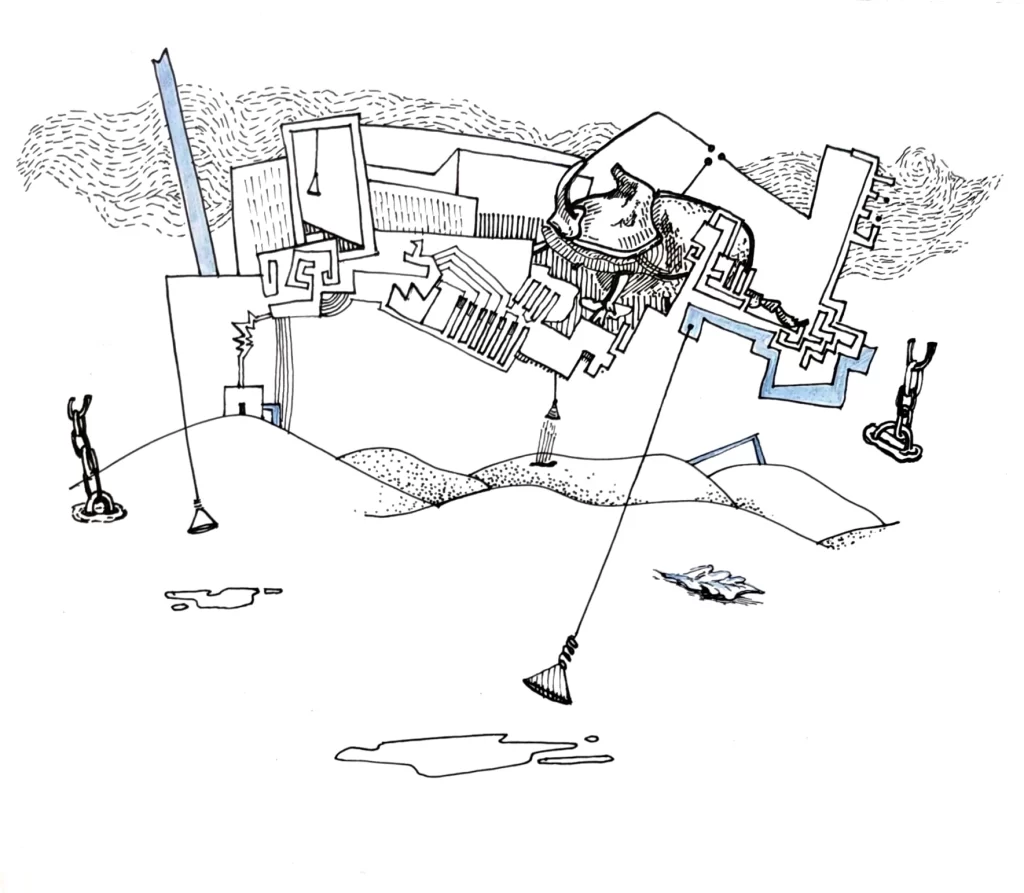 No se trata de un edificio del mundo visible, sino de una arquitectura variable cuyo plano cambia con cada pensamiento, con cada duda y con cada miedo. En mi caso, ese edificio adopta la forma de un laberinto suspendido sobre un desierto. Sus habitaciones no son transitables: se despliegan como ideas inconclusas, como páginas arrancadas de un libro que alguien escribió en un idioma anterior al latín.